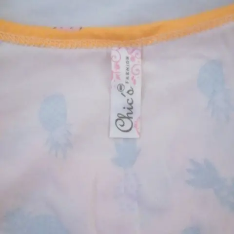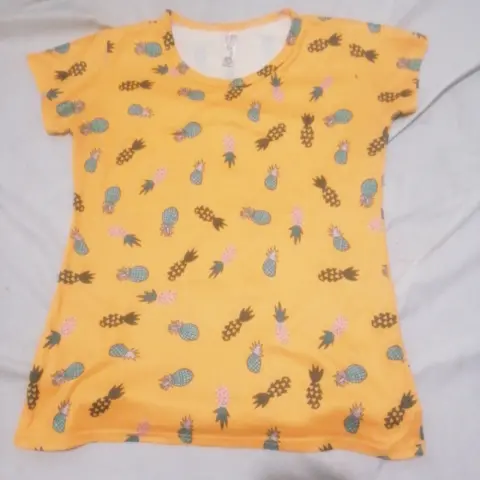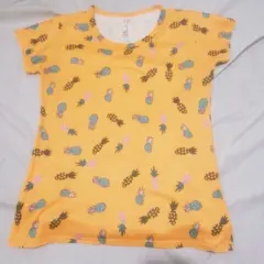 Blusa cuello redondo. Amarilla de piñas para mujer delgada.Muy suave, esta como nueva tal cual en foto.