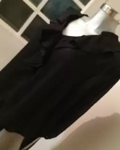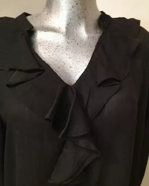 Blusa cuello v. Blusa cuello v plisada manga tres cuartos color negro