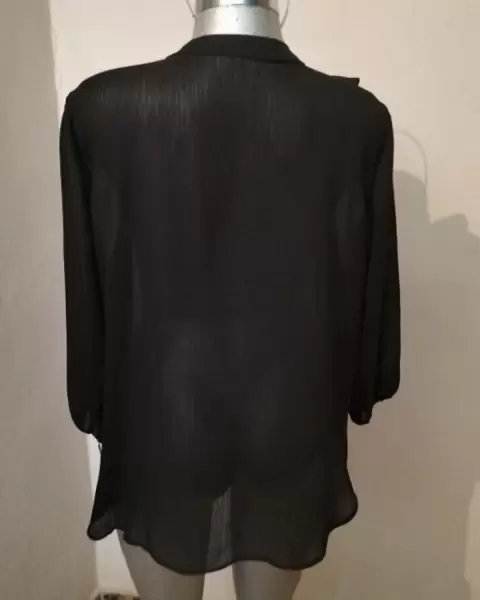 Blusa cuello v plisada manga tres cuartos color negro