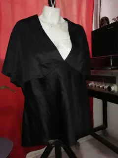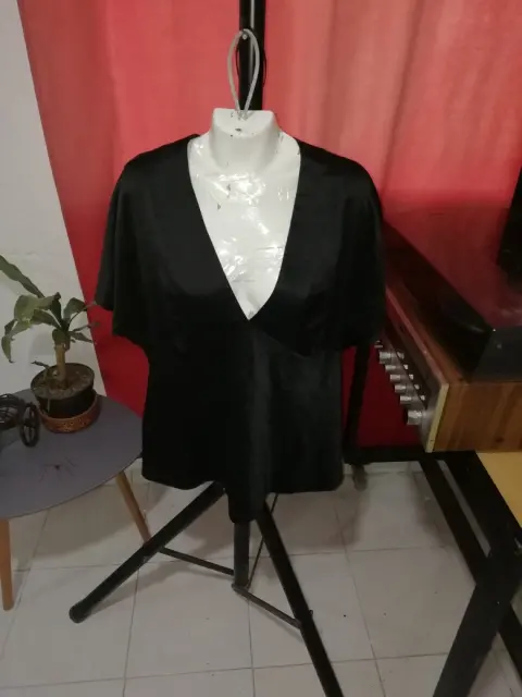 Blusa Cuello V. Elegante blusa negra 🌑🖤🌚🦓👁️ ligera y con bordes brillantes en el cuello, manga corta. Imperdible en tu guardarropa 💅😻✨😌
