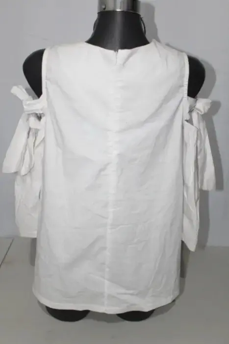 Blusa de algodon. Blusa de algodon suelta en color blanco con hombros descubiertosTalla S