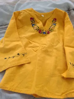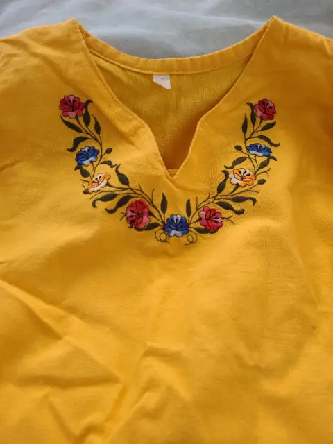 Blusa de algodón. Blusa bordada de algodón S, pero es muy reducida, recomiendo XS.Medidas hombros 36 cm. Pecho 84 cm. Bíceps 28 cm. La tela no estira