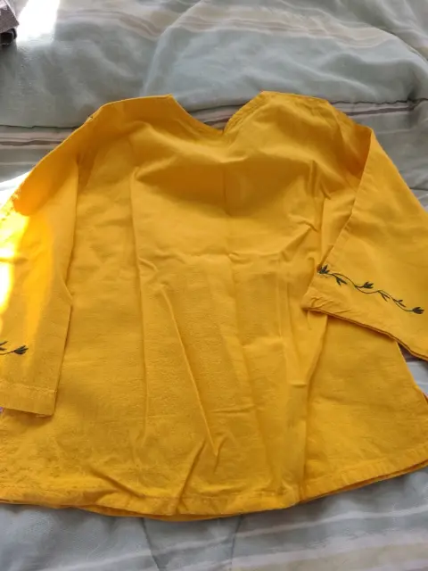 Blusa bordada de algodón S, pero es muy reducida, recomiendo XS.Medidas hombros 36 cm. Pecho 84 cm. Bíceps 28 cm. La tela no estira