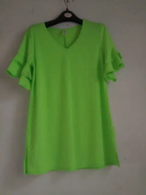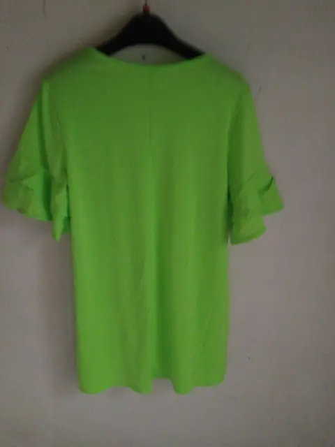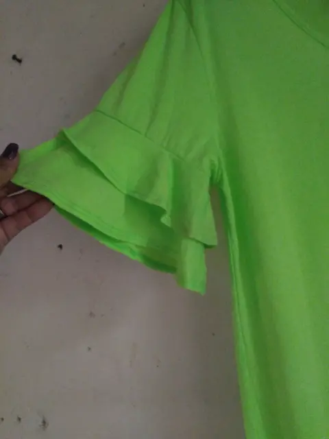 Bonita blusa de algodón con detalles de planes en mangas y cuello en v color verde limón