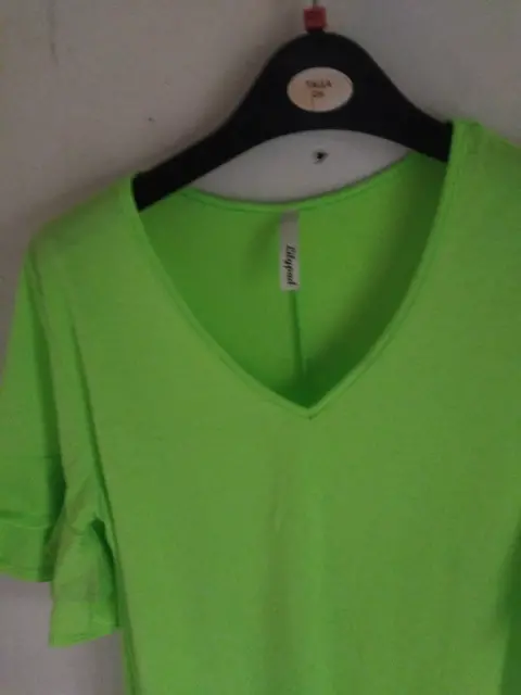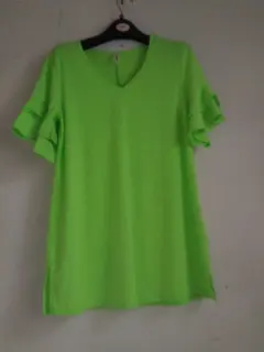 Blusa de algodón casual. Bonita blusa de algodón con detalles de planes en mangas y cuello en v color verde limón