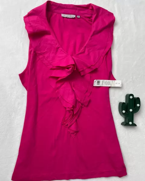 Blusa de algodón fiucsia. Hermosa blusa sin mangas talla L tela de algodón