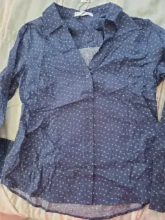 Blusa nueva de algodón es talla L pero viene reducida. Mide 82 cm de pecho y 4ocm de hombro. El estampado blanco es muy discreto.
