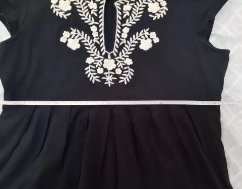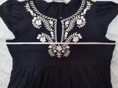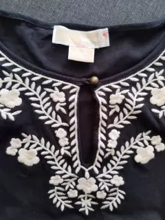 talla M, medidas: axila a axila 45 cm, a nivel de dónde se abre para tener caída más abierta 41 cm, bonito bordado en pecho, usada una vez, sin detalles