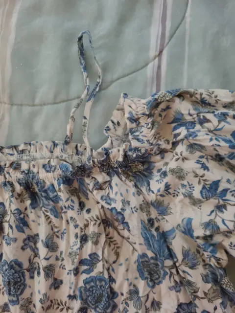 Blusa estilo cottage muy fresca de algodón que estira, amplia y de manga corta y hombros descubiertos. Está en muy buen estado