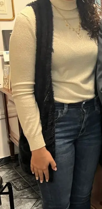 Blusa de brillos nine west, color beige, muy elegante, al final se muestra una foto de masomenos como queda puesta, queda a M y L esta amplia, no tiene detalles