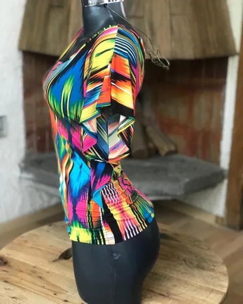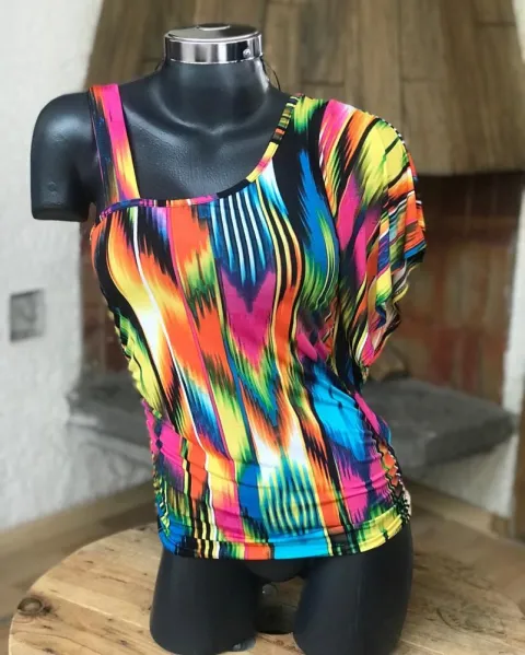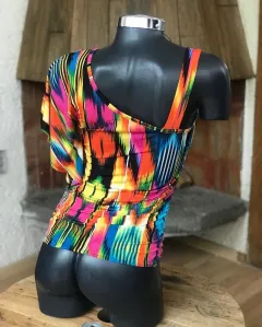 Blusa de colores asimétrica. Padrísima blusa importada de colores asimétrica con un hombro descubierto la puedes usar con algo formal a casual queda para tallas mediana agrande
