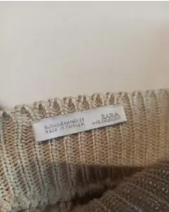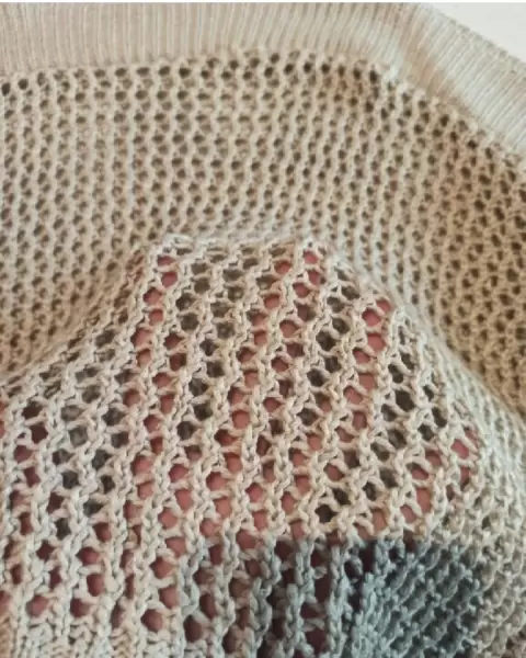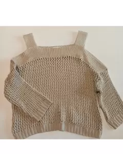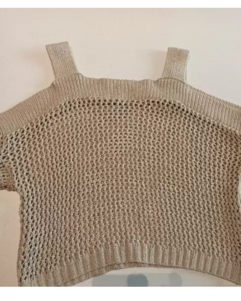Blusa / sueter de crochet color beige, se transparenta a porque todo es tejido, con los hombros descubiertos