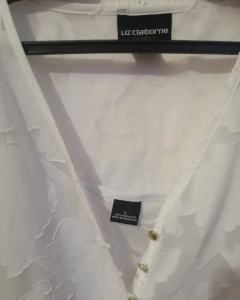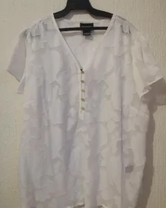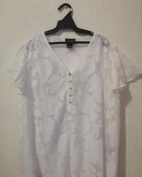 Blusa 2 en 1 ya que la de arriba es muy transparente con un poco de bordado por eso cuenta con una blanca sencilla de tirantes para usar abajo, la blusa cuenta con botones dorados al frente.