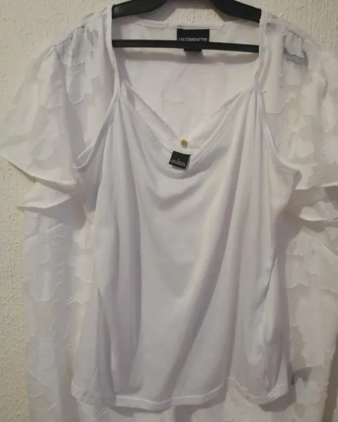Blusa de Dama 2 en 1. Blusa 2 en 1 ya que la de arriba es muy transparente con un poco de bordado por eso cuenta con una blanca sencilla de tirantes para usar abajo, la blusa cuenta con botones dorados al frente.