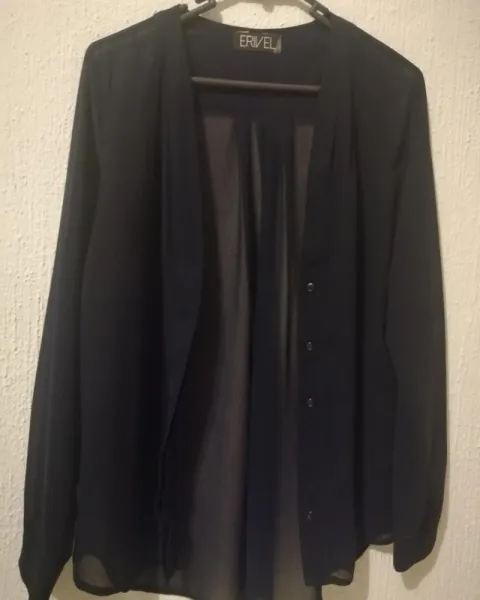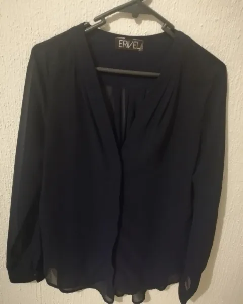 Blusa semi transparente manga larga, color azul marino, botones al frente talla m/l