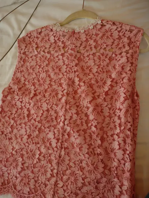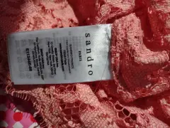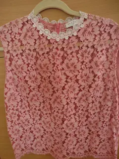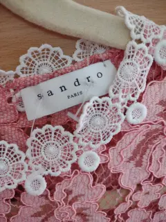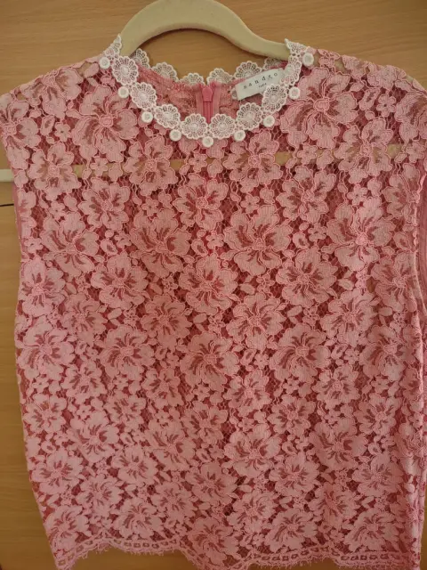 Blusa de diseñador de encaje rosa pastel. Blusa SANDRO de diseñador. Elegante, hermosa. Color palo de rosa, cuello con detalle de encaje en blanco. NUEVA.