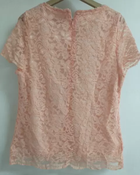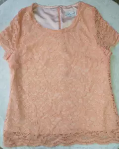 Blusa con encaje color melón, está linda blusa con cuello redondo y forro, hará verte súper linda y elegante, el tono es bellísimo y combina con cualquier look.Anímate a ofertar. 🤑🥳🥰