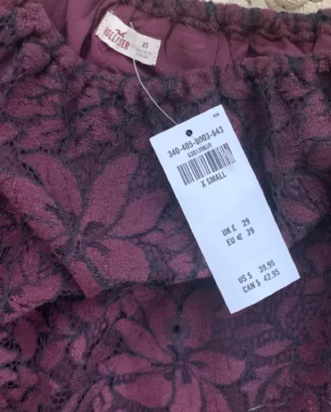 Blusa hombros descubiertos de encaje marca Hollister es nueva con sus etiquetas marca Hollister, talla XS, una belleza luce divina