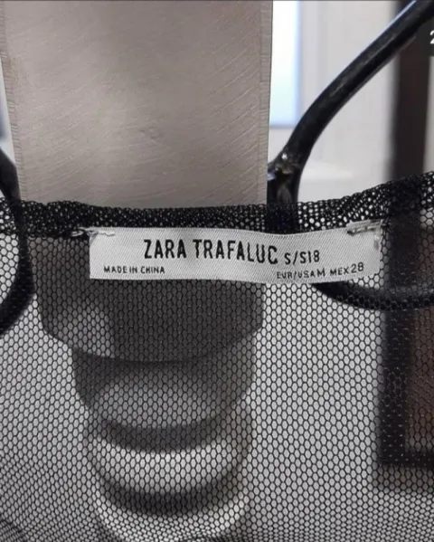 Blusa de encaje negra. Blusa Zara transparente de hombros descubiertos, tiene su blusita de tirantes abajo, sin detalles.