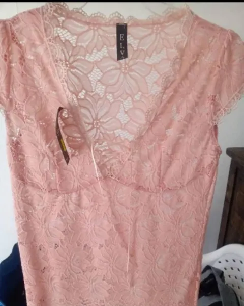Blusa de encaje rosa pastel. Blusa de encaje rosa pastelManga corta