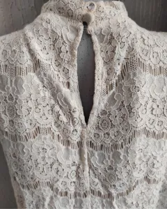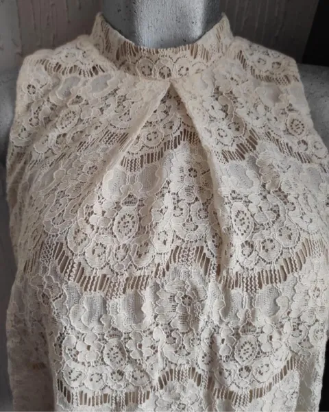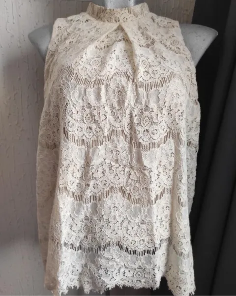 Blusa de encaje sin mangas. Preciosa blusa beige en encaje cuello alto sin manga con forro