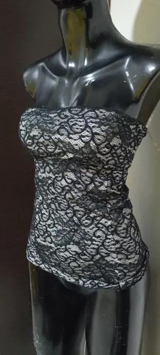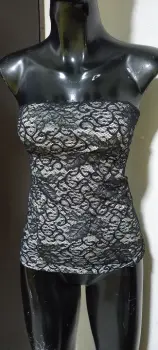 Blusa de encaje strech strapless elegante. Gracias por tu visita ..En esta ocasión te traemos:..................................................................................TALLA mMARCA studio .fCOLOR negro con blanco STRECH si TELA naylon MADE IN ?MEDIDAS Axila 42 cm CINTURA 32 cm CADERA 42 cm LARGO 43 cm Estira mucho más Las medidas son de lado a lado de la prenda