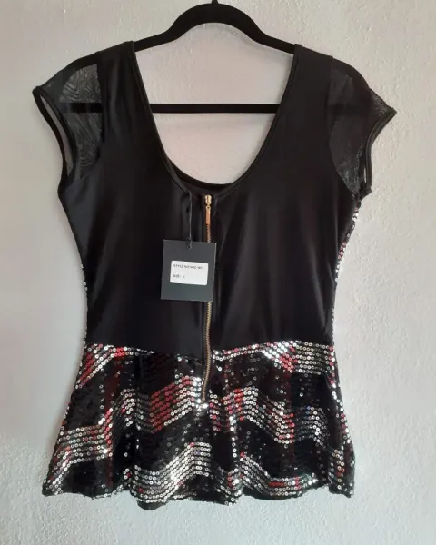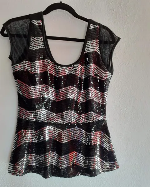 Blusa de fiesta. Blusa de fiesta con lentejuelas y trasparencias en mangas.