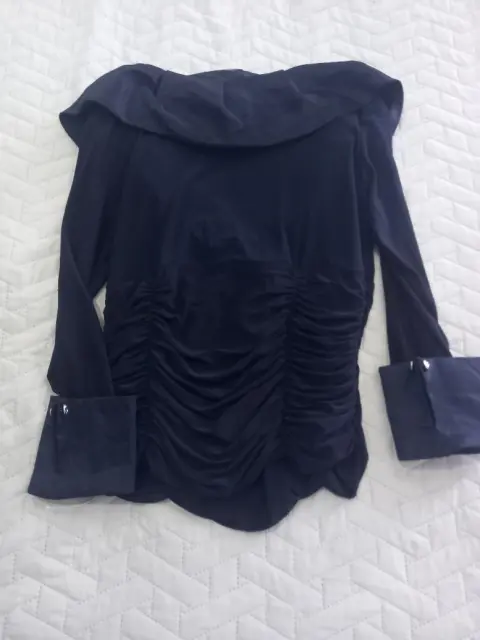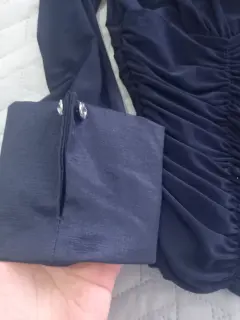 Hermosa y elegante blusa azul marino, cuello hermoso y mangas tres cuartos con mancuernillas ajusta hermoso a la cintura es stretch, talla M mide de axila a axila 47 cm sin estirar de largo desde hombro 57cm