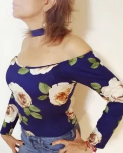 Blusa de flores. Luce hermosa con esta blusa que amolda increíble, con hombros descubiertos. Sin detalles, solo se uso una vez.