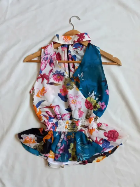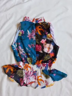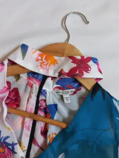 Blusa de flores marca guess talla xs, ziper en espalda, escote en v.