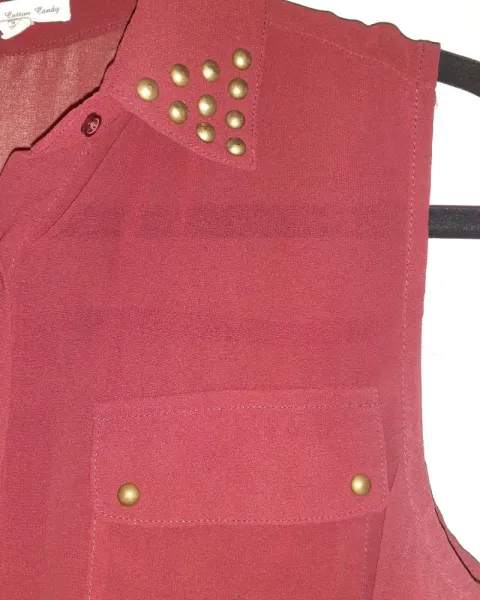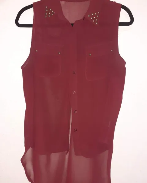 Blusa de gasa en buen estado, estilo cola de pato (larga de la parte de atras) con estoperol dorado en cuello y bolsa. Visita mi closet, hago paquetes.