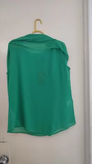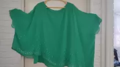 Blusa de gasa 💚. Blusa doble, asimétrica, cuello de ojal y mangas de murciélago.Tela tipo gasa, con pedrería en la parte de abajo.Tiene unas manchitas que se pueden apreciar en la 4a foto. Salen con una lavada.