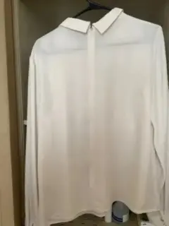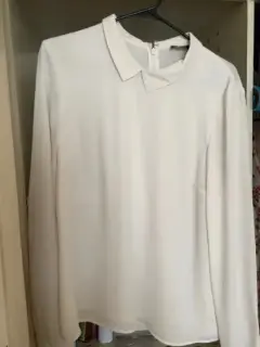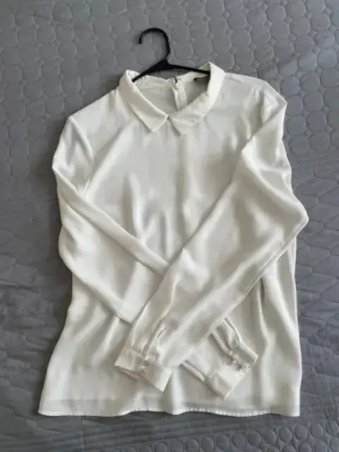 Blusa de gasa manga largaColor blanco aperlado Talla 12/38Marca OASIS Tiene cierre en la espalda altaY detalles de botones en las mangas