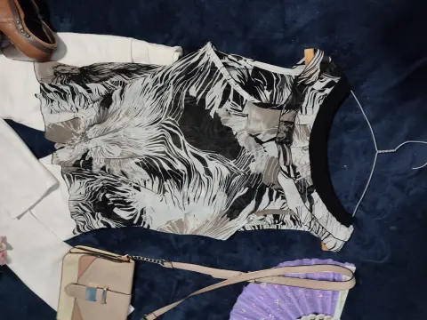 •Te interesa? Escucho ofertas•Deseas varias prendas? armo tu paquete✨Preciosa blusa de gasa con print estilo naturaleza muerta en tonos negro, café y blanco. Transparenta, tela delicada. Escote en V con olanes. Luce muy linda para llevar a la oficina. 😊
