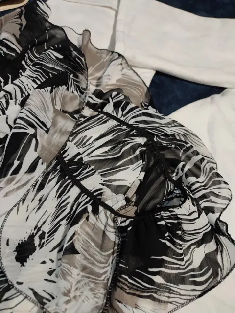 Blusa de gasa y olanes. •Te interesa? Escucho ofertas•Deseas varias prendas? armo tu paquete✨Preciosa blusa de gasa con print estilo naturaleza muerta en tonos negro, café y blanco. Transparenta, tela delicada. Escote en V con olanes. Luce muy linda para llevar a la oficina. 😊