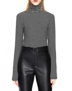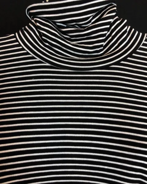 Blusa con cuello alto en línea negras y blancas, súper estilizada y linda.