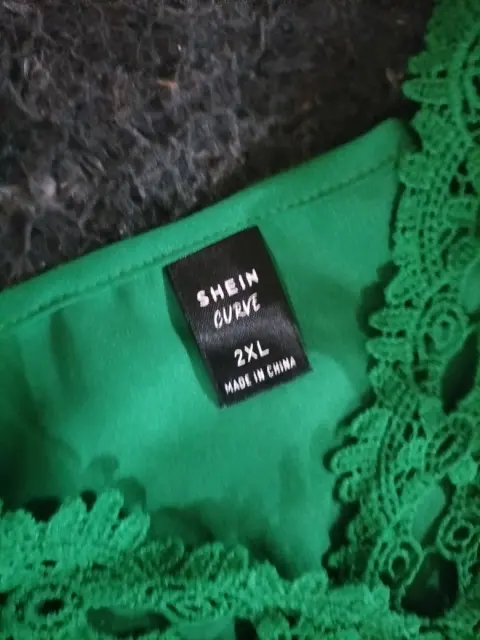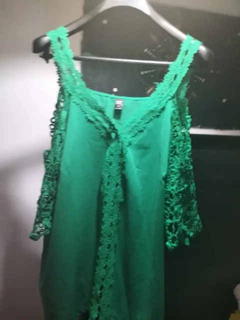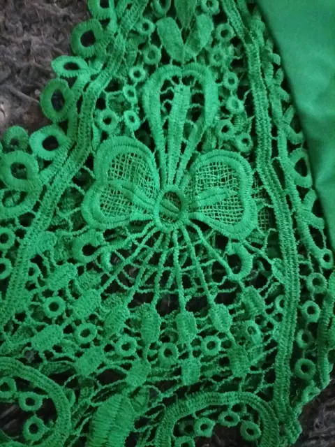 Casual verde encaje en contraste manga media, tela liso, hombros descubiertos