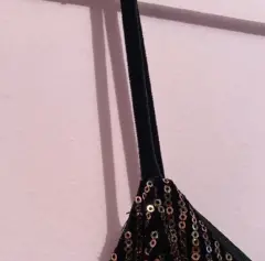 Blusa de lentejuelas doradas con terciopelo por la parte de atrás y tirantes, talla: 2XL.Producto importado 🇺🇸Medidas:Tirantes: 40cmCintura: 47cmAncho(axila a axila): 49cm Largo: 47cm