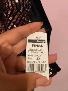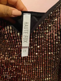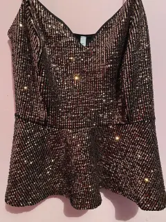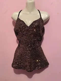 Blusa de lentejuelas 2XL. Blusa de lentejuelas doradas con terciopelo por la parte de atrás y tirantes, talla: 2XL.Producto importado 🇺🇸Medidas:Tirantes: 40cmCintura: 47cmAncho(axila a axila): 49cm Largo: 47cm
