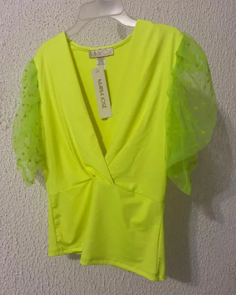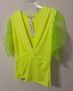 Blusa de lickra. Padrísima blusa de lickra en color amarillo fosfo con manga de Tul y lunares , escote en v