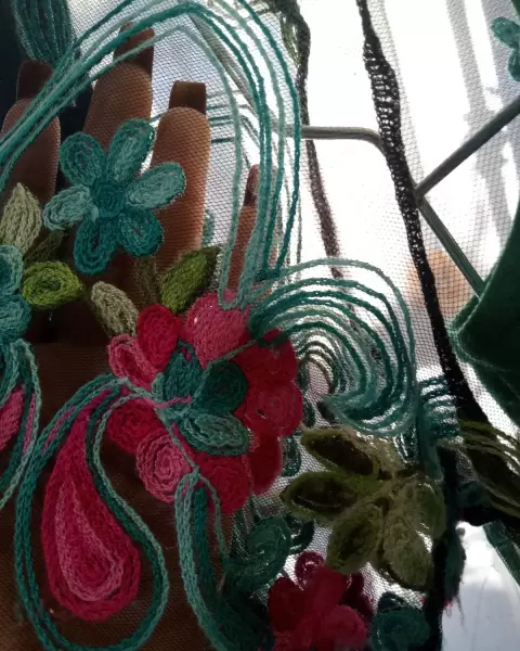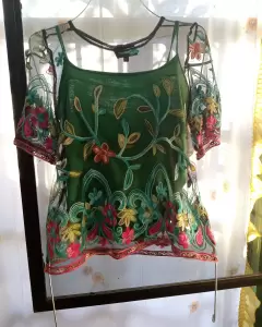 Preciosa blusita de mesh en color negro con encaje de flores muy coloridas😍😍😍 manga corta y corte hasta la cintura, incluye blusita verde para usar debajo o la puedes combinar con un bralett 😍😍❤️