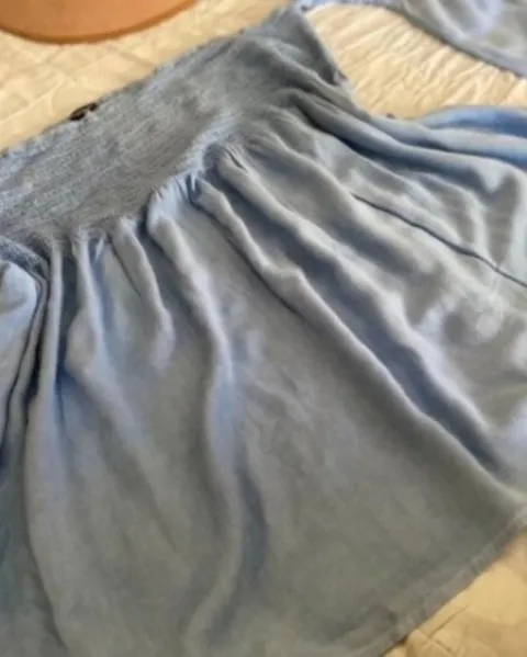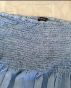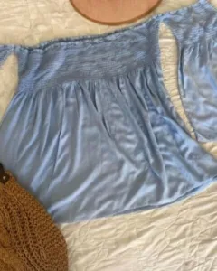 Blusa de mezclilla. Hermosa blusa de hombros caídos en la parte del busto tiene resorte, en la parte de abajo es holgada es se ajusta perfectamente a la comodidad de tu busto....