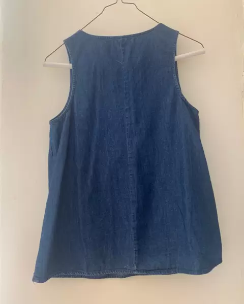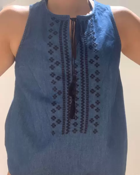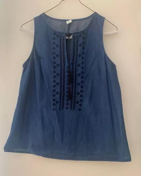 Blusa sin mangas marca old navy. de mezclilla y con bordado negro