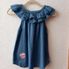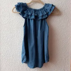 Blusa de Mezclilla con Olanes. Blusa de Mezclilla talla 14 años. Puede llevarse a los hombros. Para más prendas hermosas visita mi closet. Mi código de descuento MoraB3XoL0