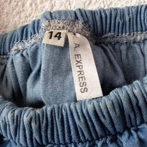 Blusa de Mezclilla talla 14 años. Puede llevarse a los hombros. Para más prendas hermosas visita mi closet. Mi código de descuento MoraB3XoL0