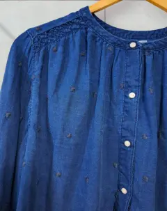 Blusa de Mezclilla Corazones Bordados. Blusa de Mezclilla con Corazones Bordados, manga larga con listines, mezclilla ligera, corazones ♥️ bordados. Talla S pero tambien queda bien a M por que es holgada Medidas: De axila a axila 71cm largo delante 61cm largo de atrás 65cm