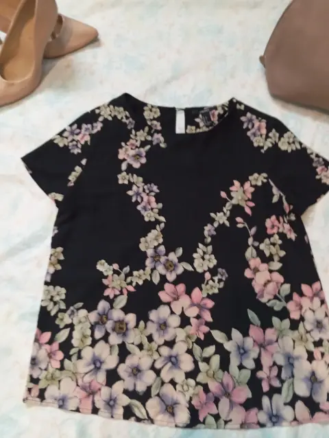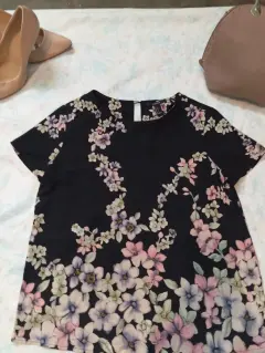 Blusa de mujer forever 21. Blusa de mujer fresca una solo puesta Floreada color negro con flores colores muy claros