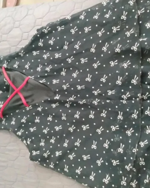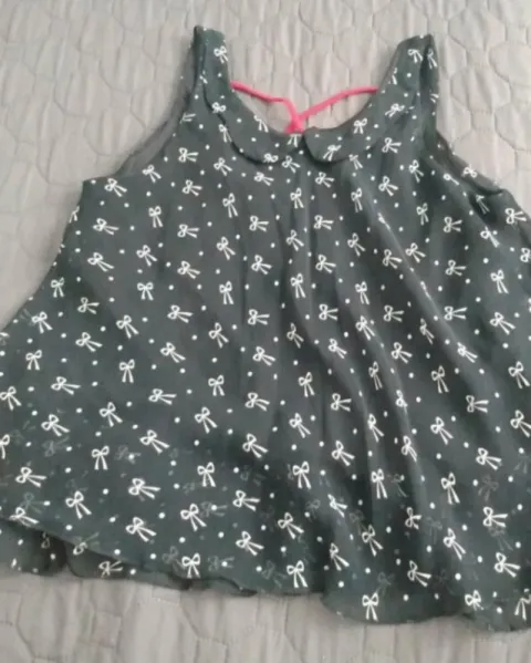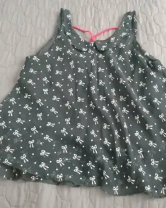 Blusa metropolis, color negro con moños blancos y tirantes rojos, tela súper fresca sin mangas. Solo se uso un vez.