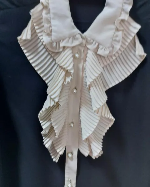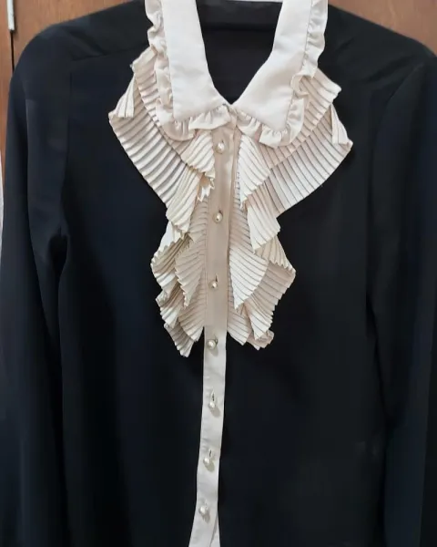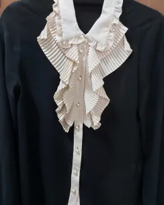 Blusa de olanes. Hermosa talla ch color negro con olanes beige nueva si etiqueta