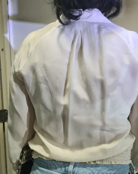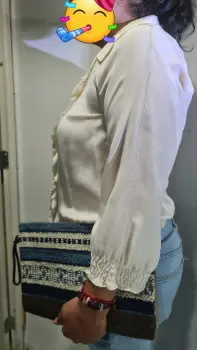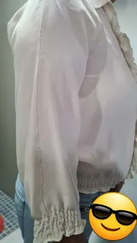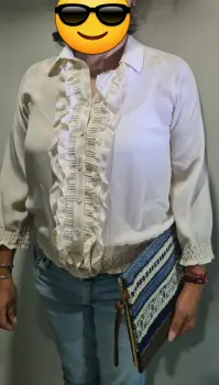 Blusa de olanes en el pecho muy elegante, resorte en puños y cintura, talla 36/S, no estira, detalle de calado en la manga muy elegante, manga de hombro a puño 47 cm